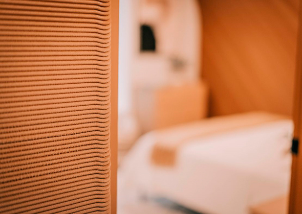 Изглед отблизо на стена в BioHome3D. Всички стени, подове и покрив на дома са отпечатани.
